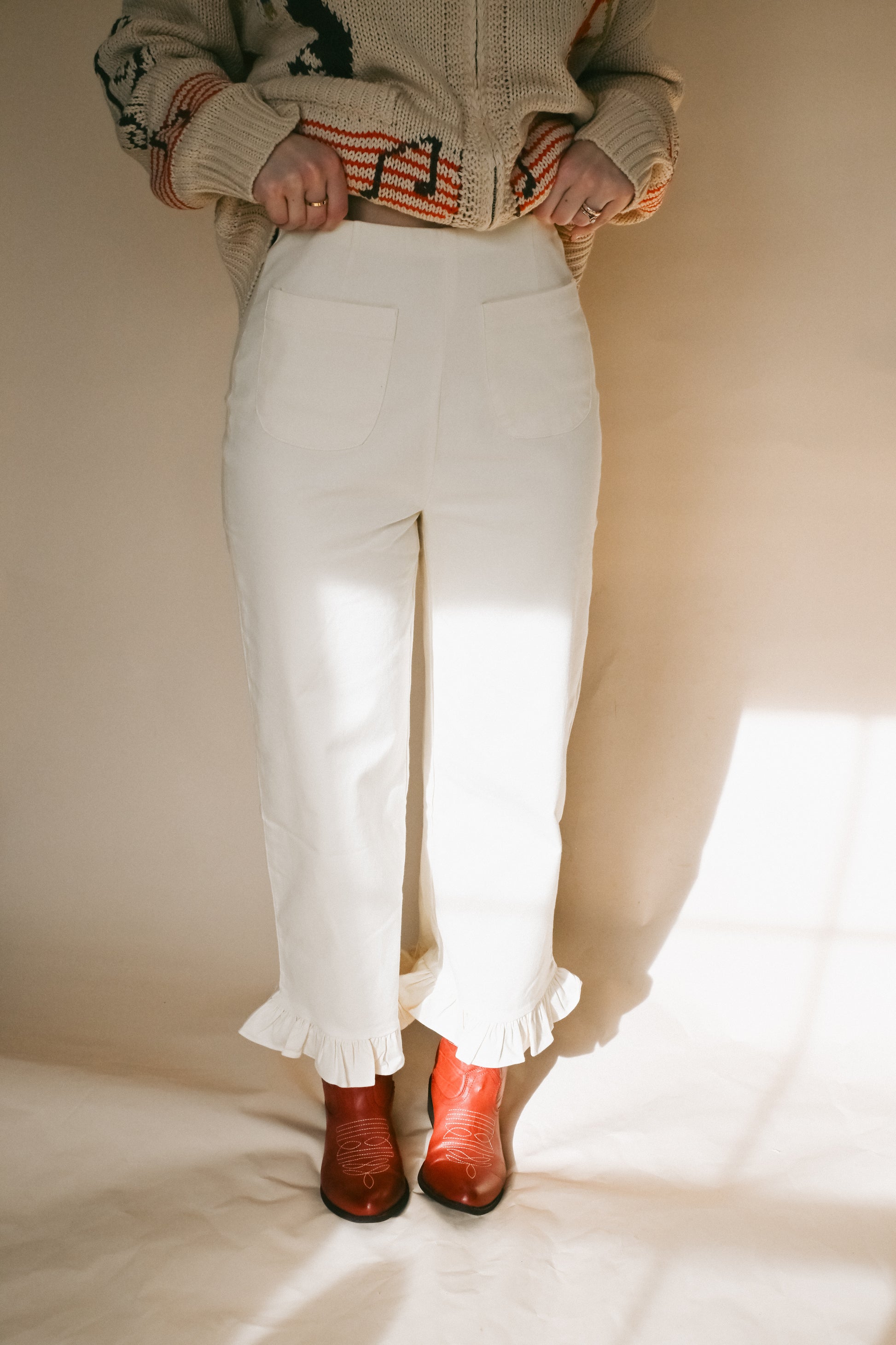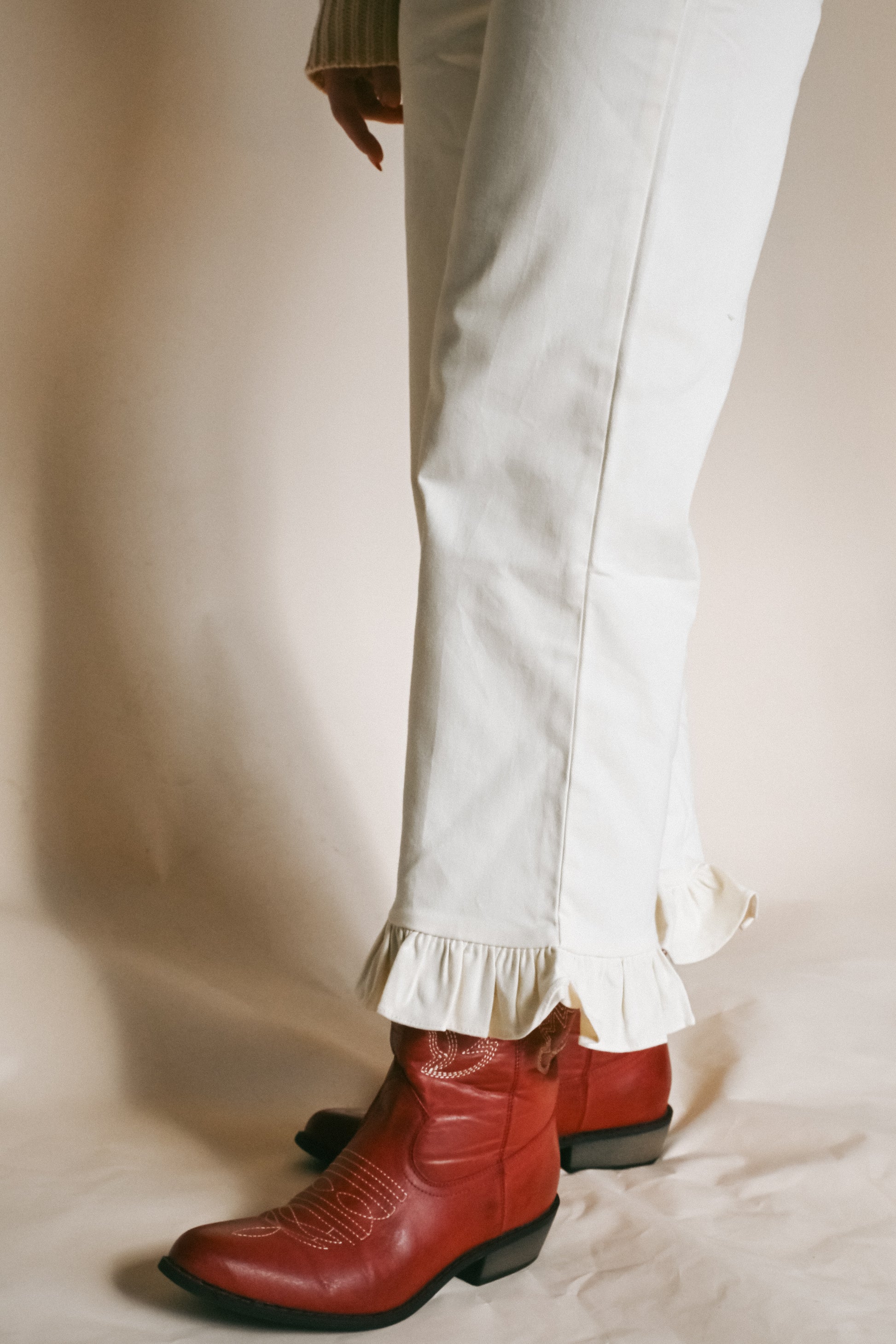 'Harper' Ruffle Pants in Cream