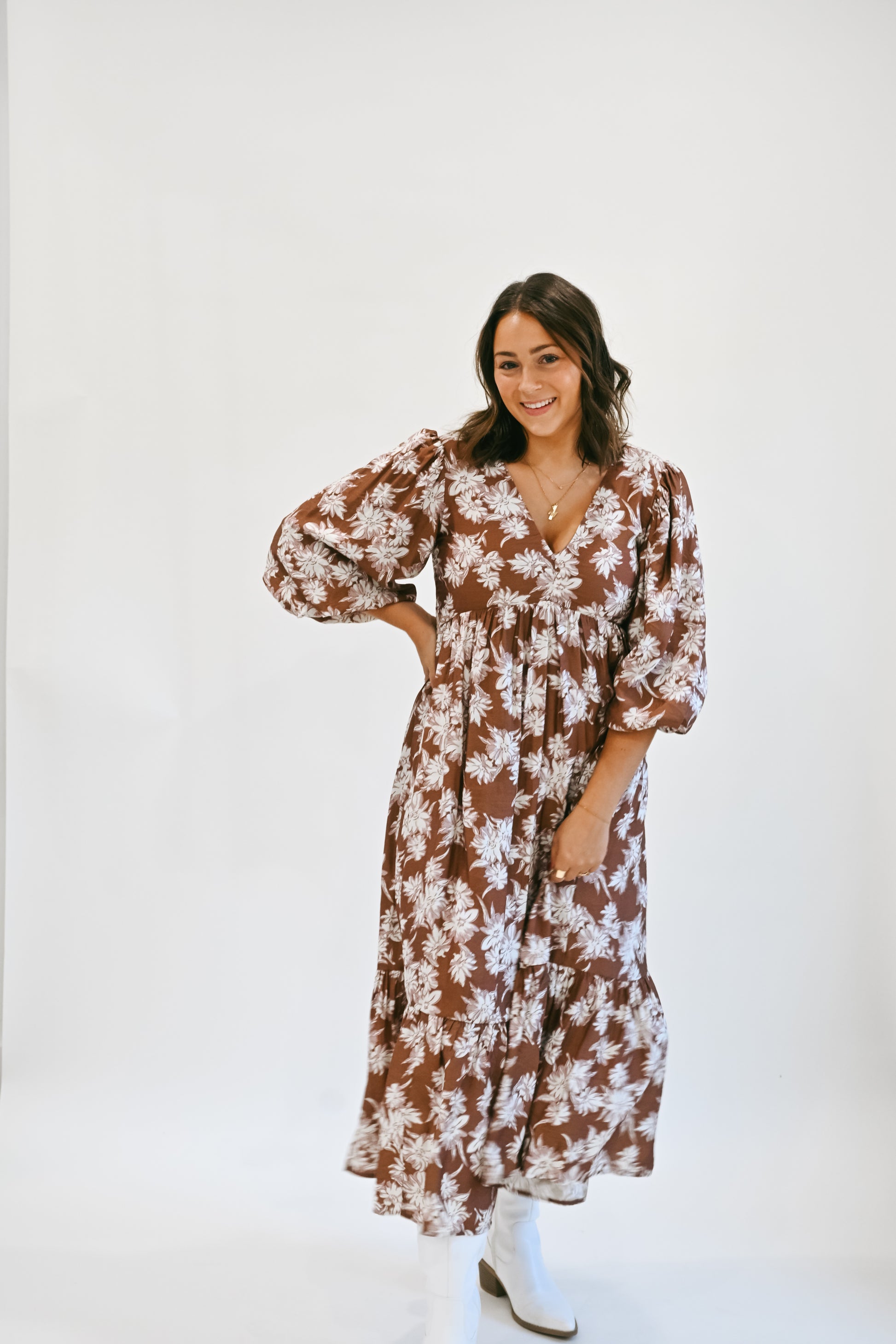 'Leann' Floral Dress in Mocha