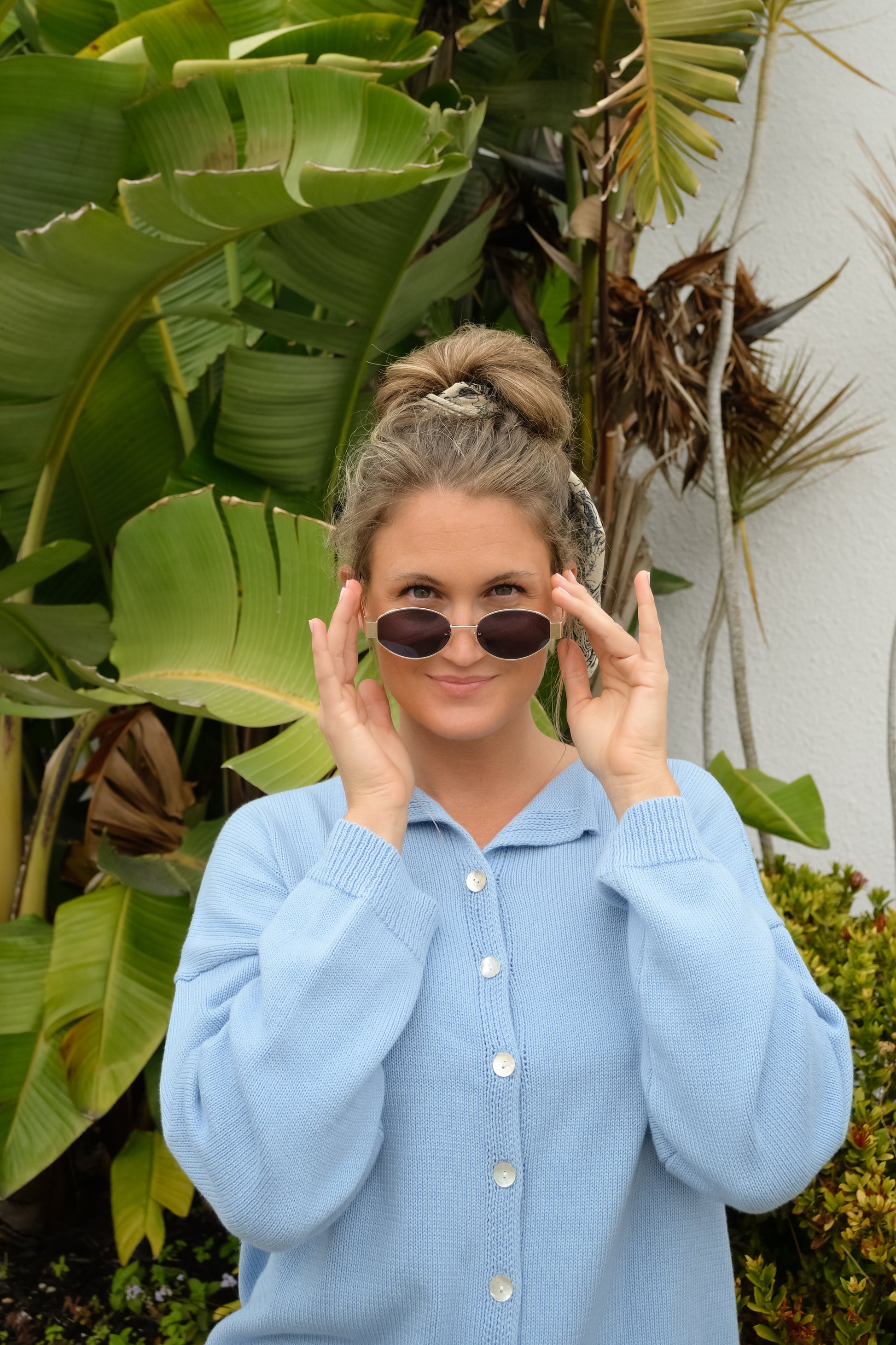 'Mae' Cotton Cardigan in Blue