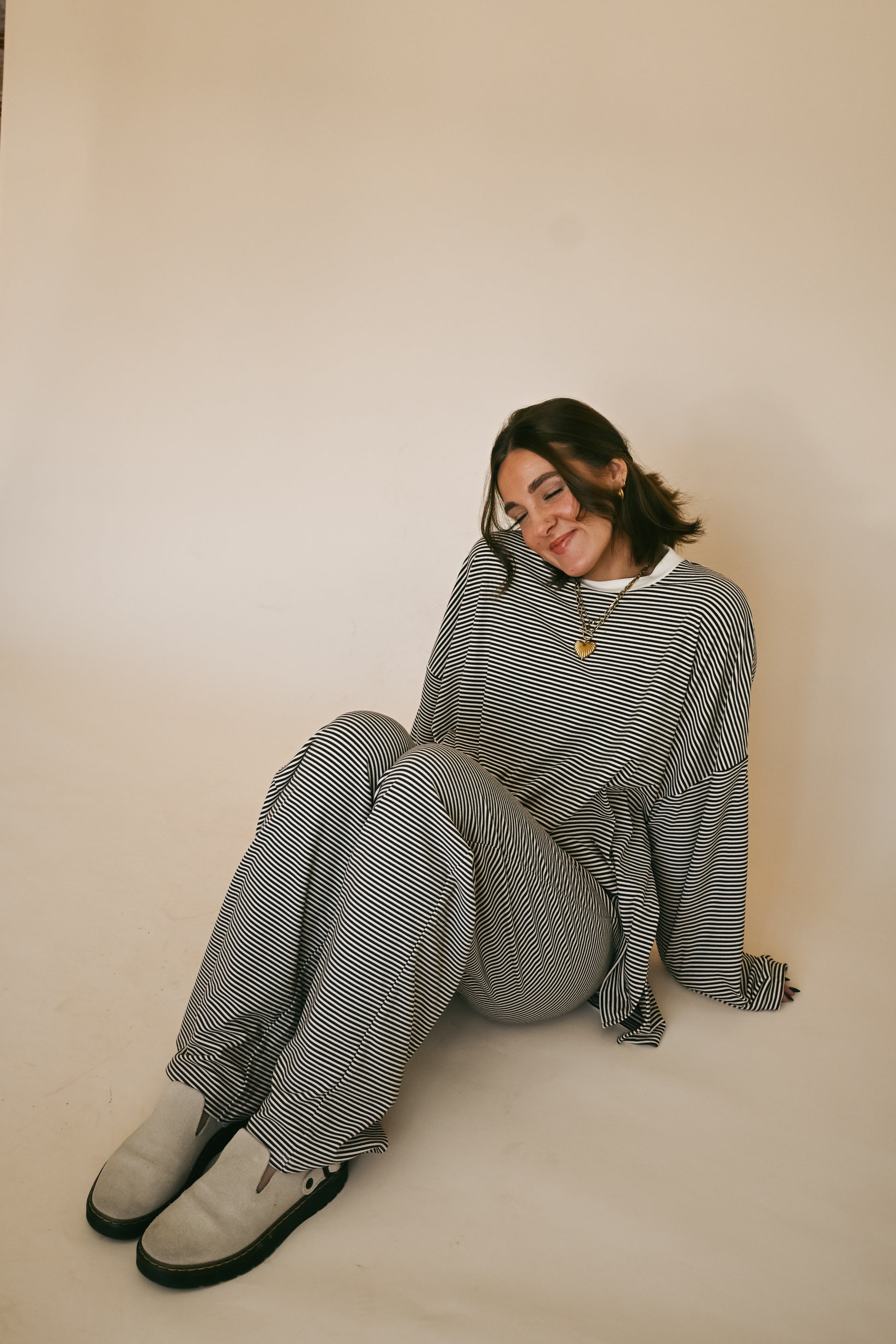 - Model is 5'7 wearing a size S/M in top and size small in pants