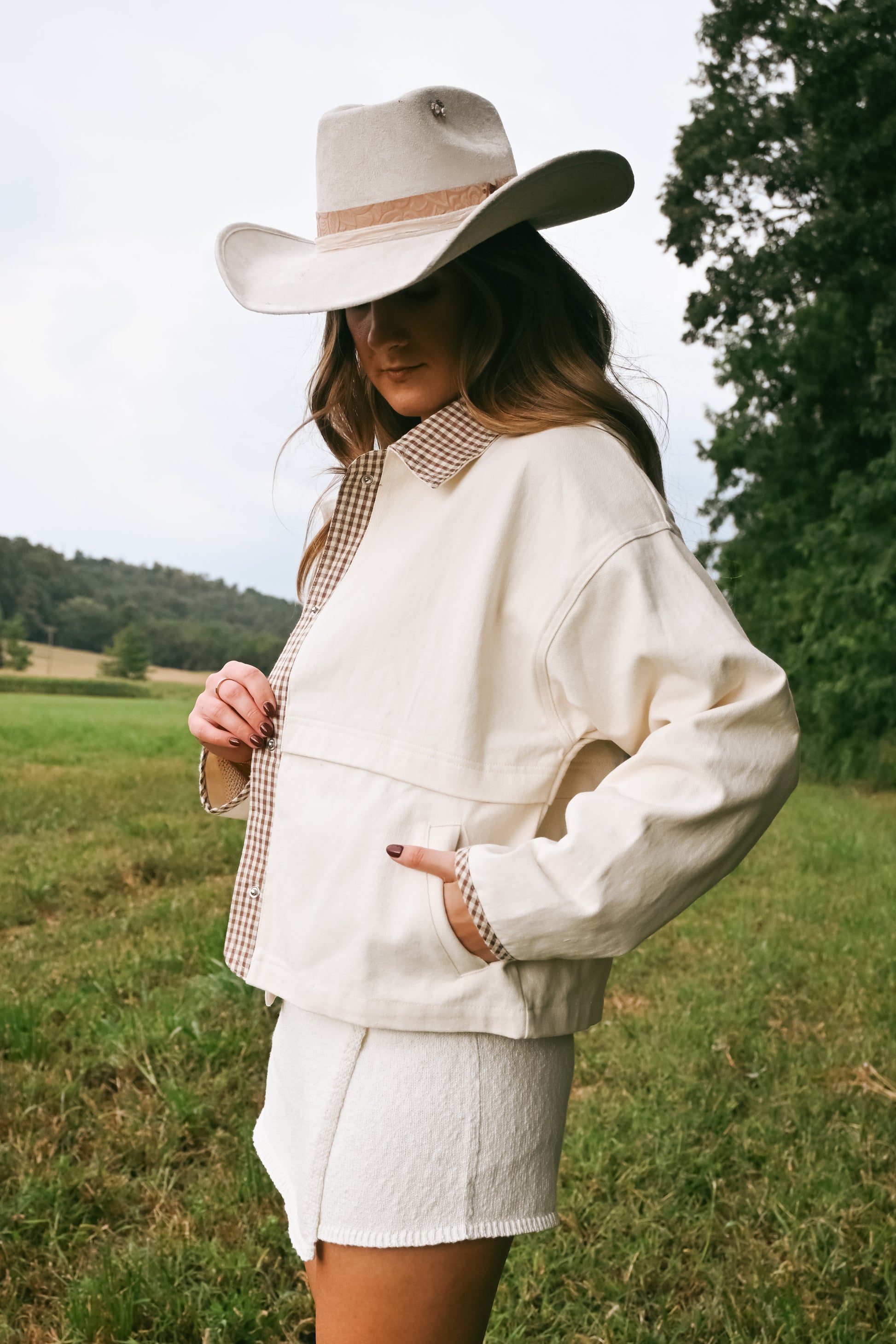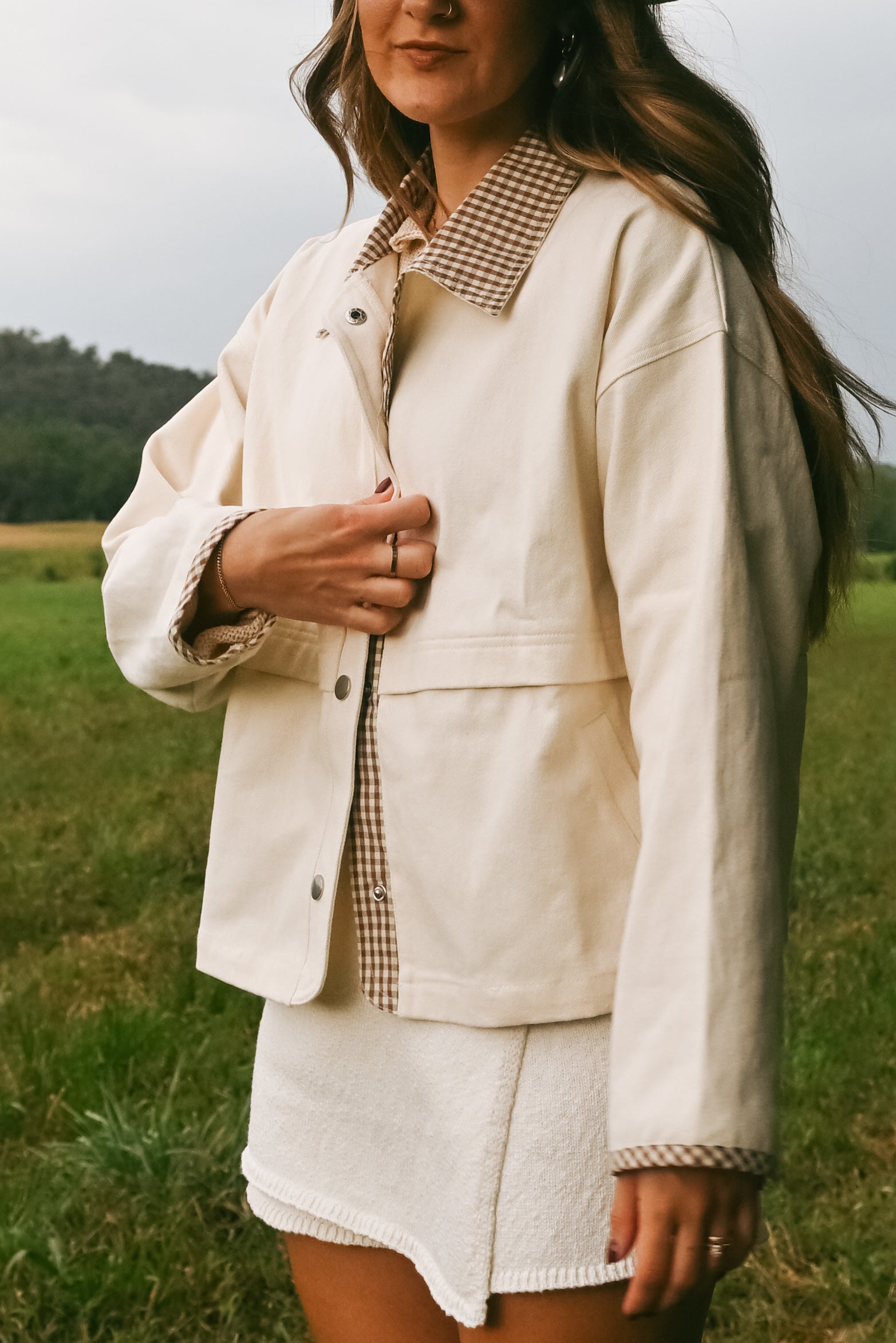 'Russet' Gingham Barn Jacket in Cream
